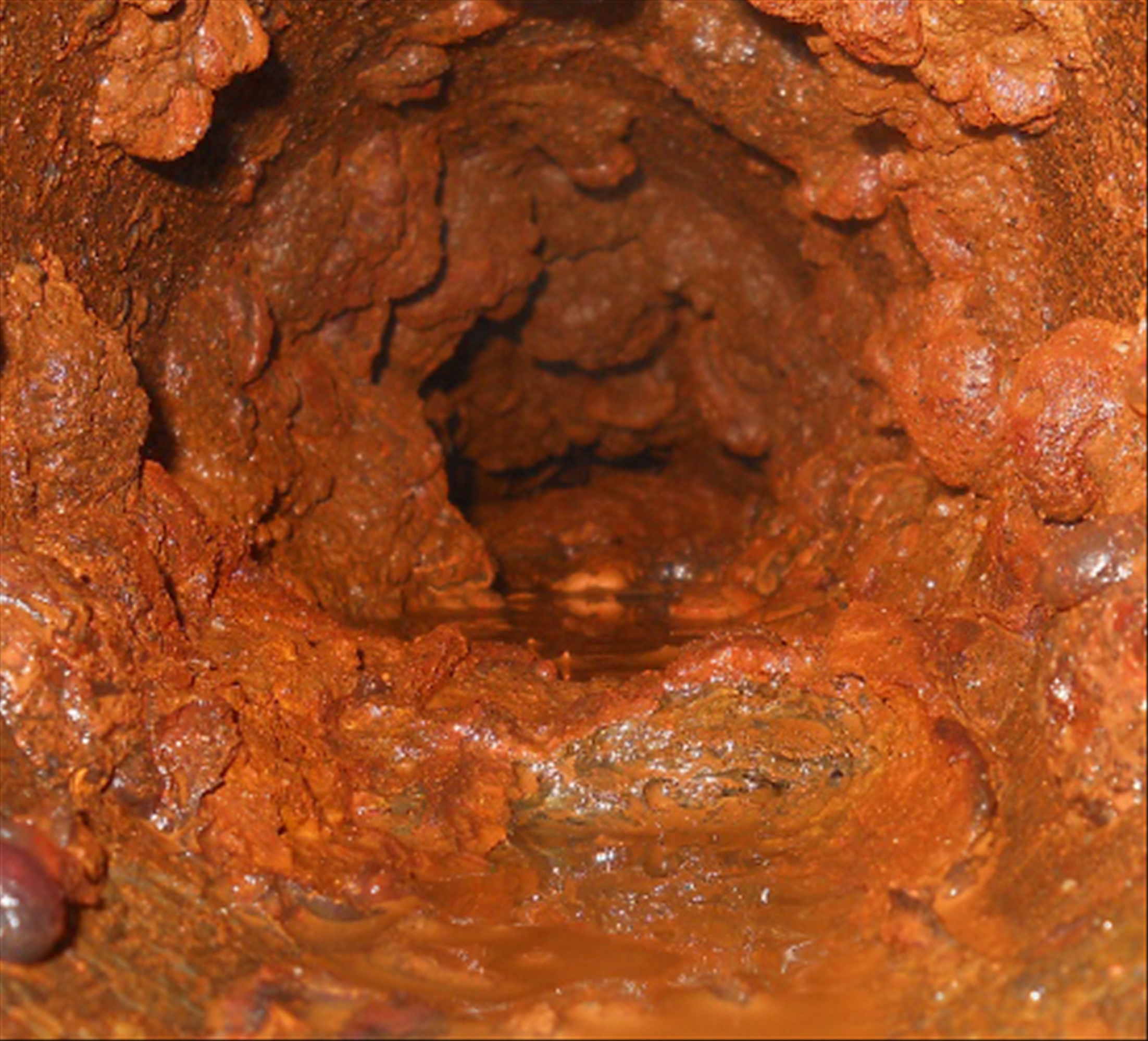 This project contained 2 x 15m long, 150mm (6”) iron pipes. Each pipe contained a 90° bend and are located below a restaurant floor at a local highway rest stop. Pipe access was below grade in a mechanical room at one end and a buried drinking water tank at the other end. The pipes were both highly tuberculated resulting in low water pressure and flow rates to the businesses. A remaining wall thickness evaluation was also conducted to determine the pipe’s remaining structural properties.