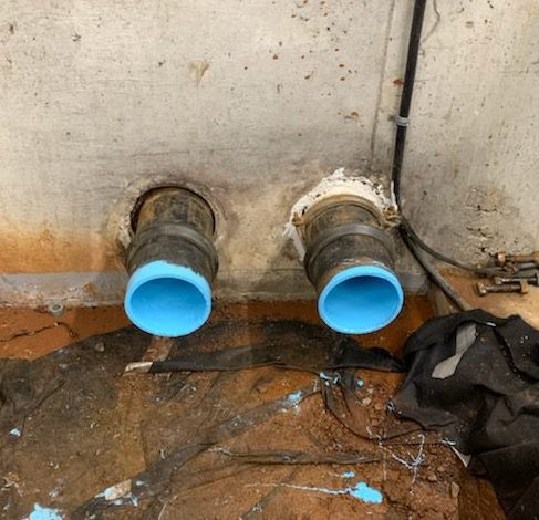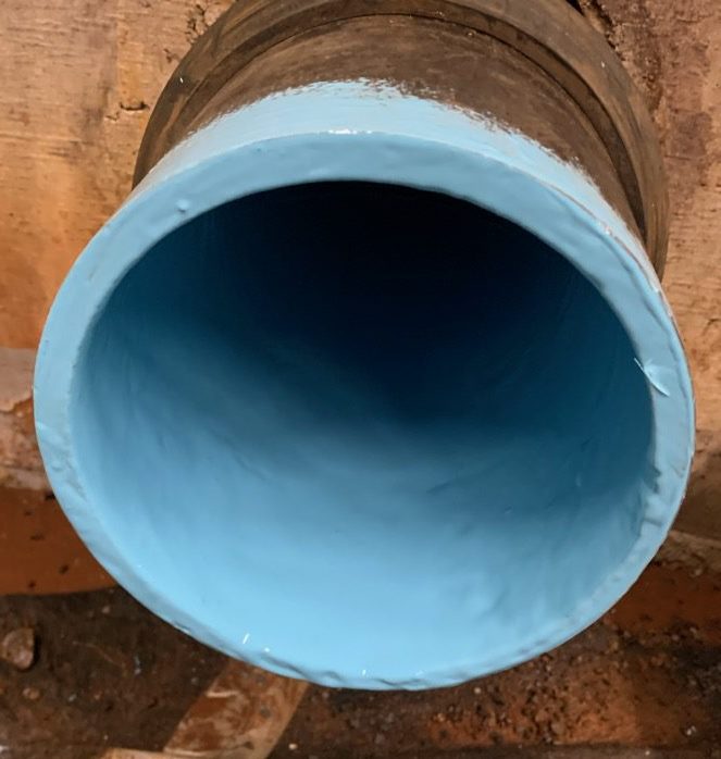 Above, both pipes after lining with BulKote™ from within the mechanical room.